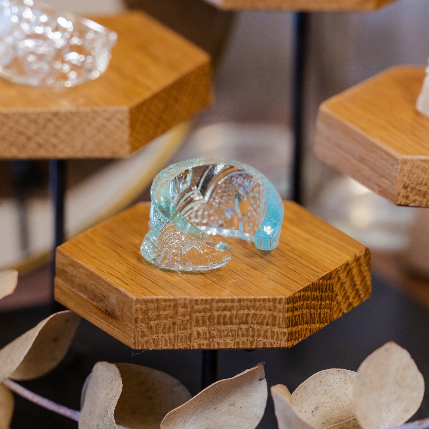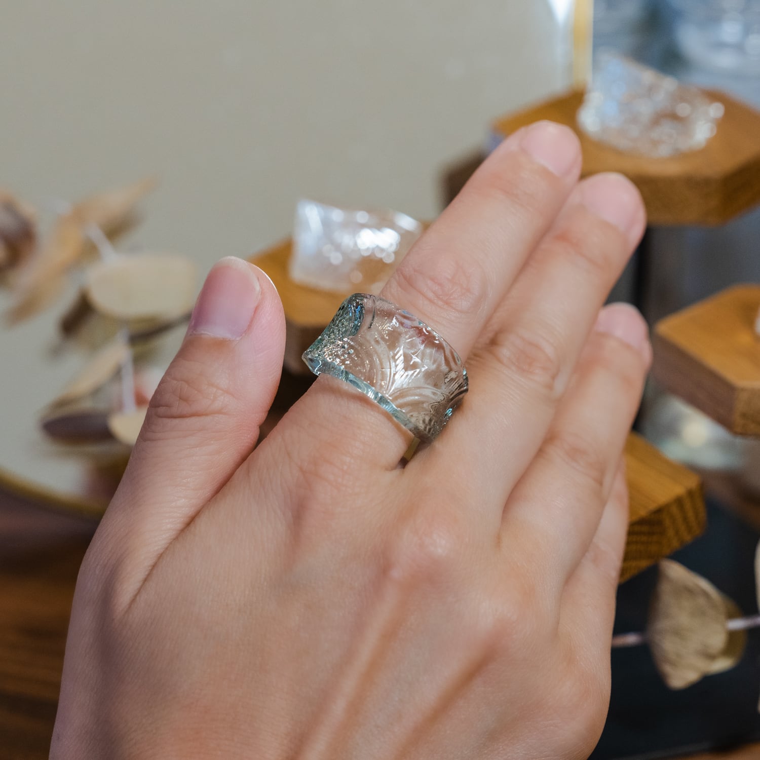 無色透明、形が同じ指輪でも、テクスチャーの違いで全く異なる表情を見せます。