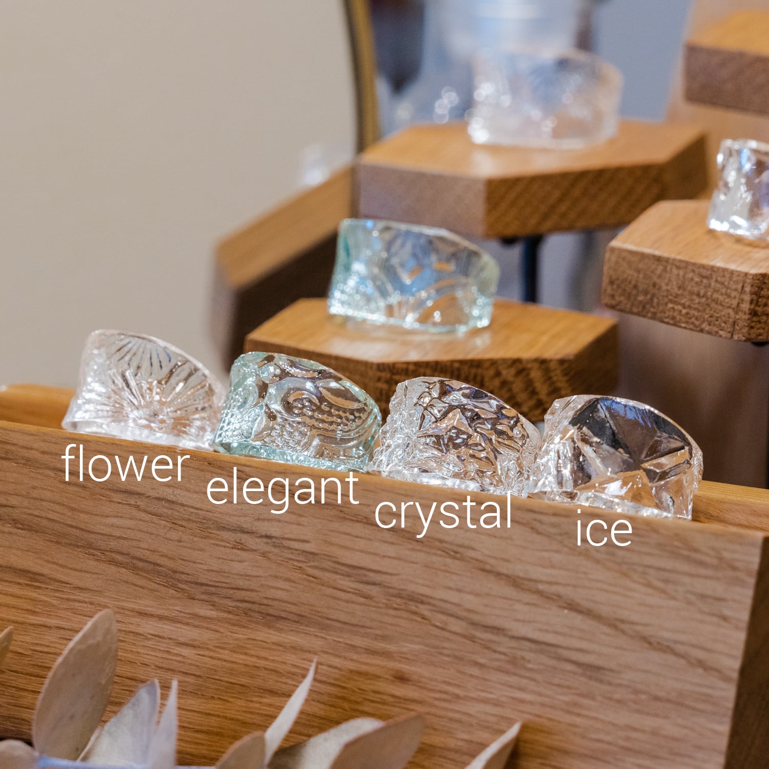 4種類のテクスチャーの違うガラスで、それぞれの表情を表現。